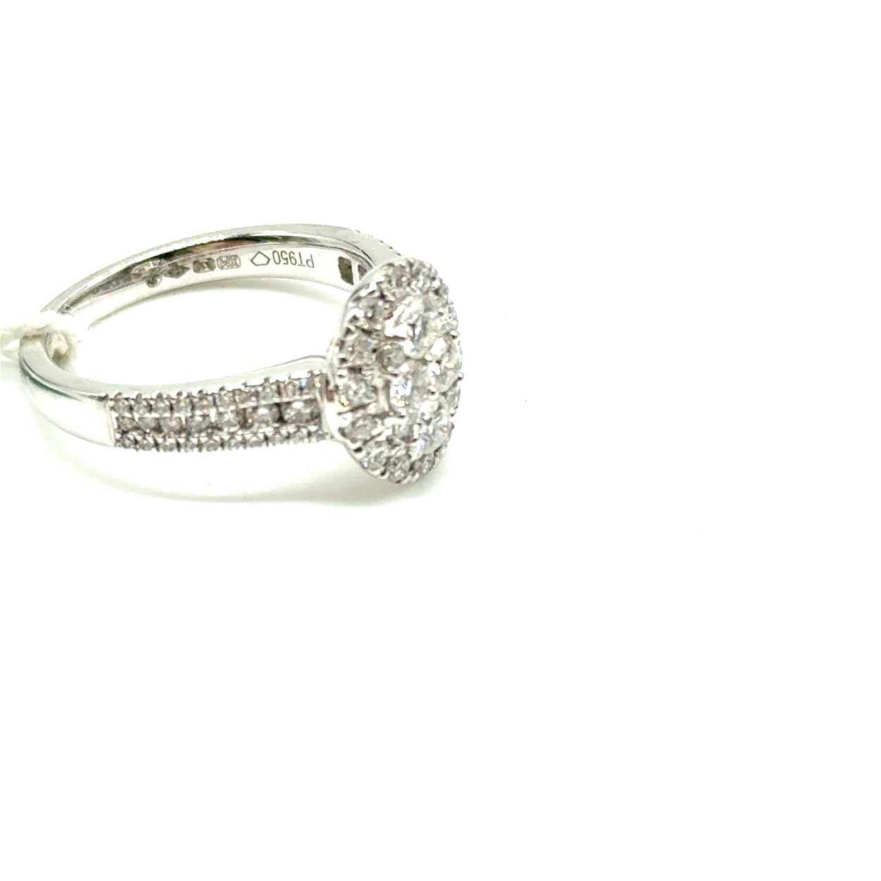platina 950 ring met diamanten van totaal 0,93 caraat.