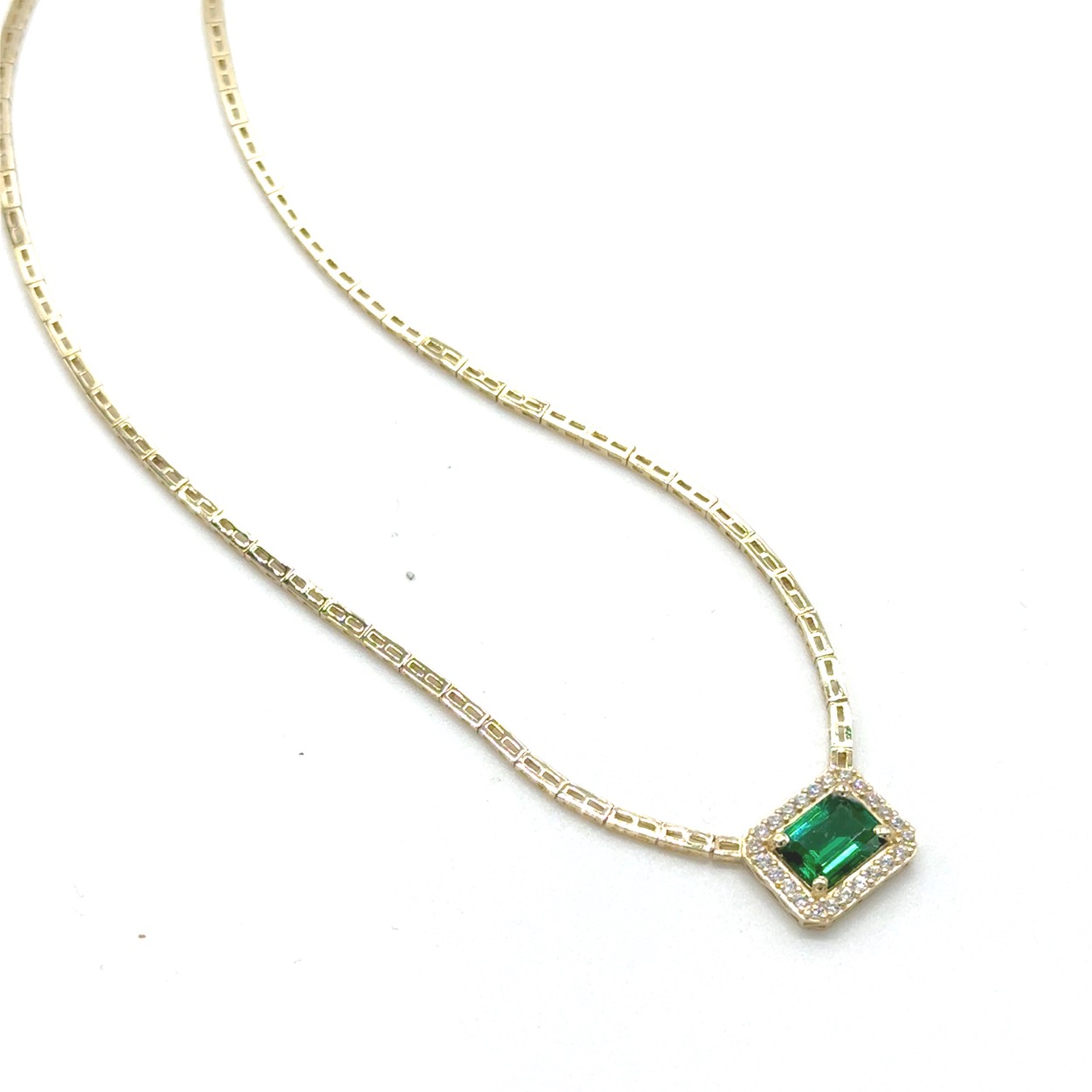 14k geelgouden collier met groen zirkonia stenen. 45cm/ 7.5 gram
