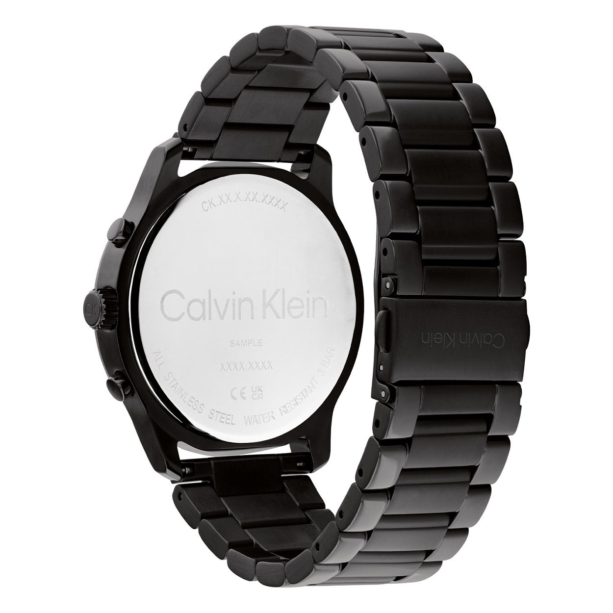 Dit Calvin Klein herenhorloge met nr CK25200209 is een sportief en stoer ontwerp. Het multifunctionele horloge heeft een zwarte stalen kast met een zwarte wijzerplaat met dag, datum en 24-uursaanduiding. Aan de kast van het horloge zit een zwarte mat glimmende schakelband met een vouwsluiting. Het horloge heeft een mineraalglas, een doorsnee van 44mm en is 3 ATM.
