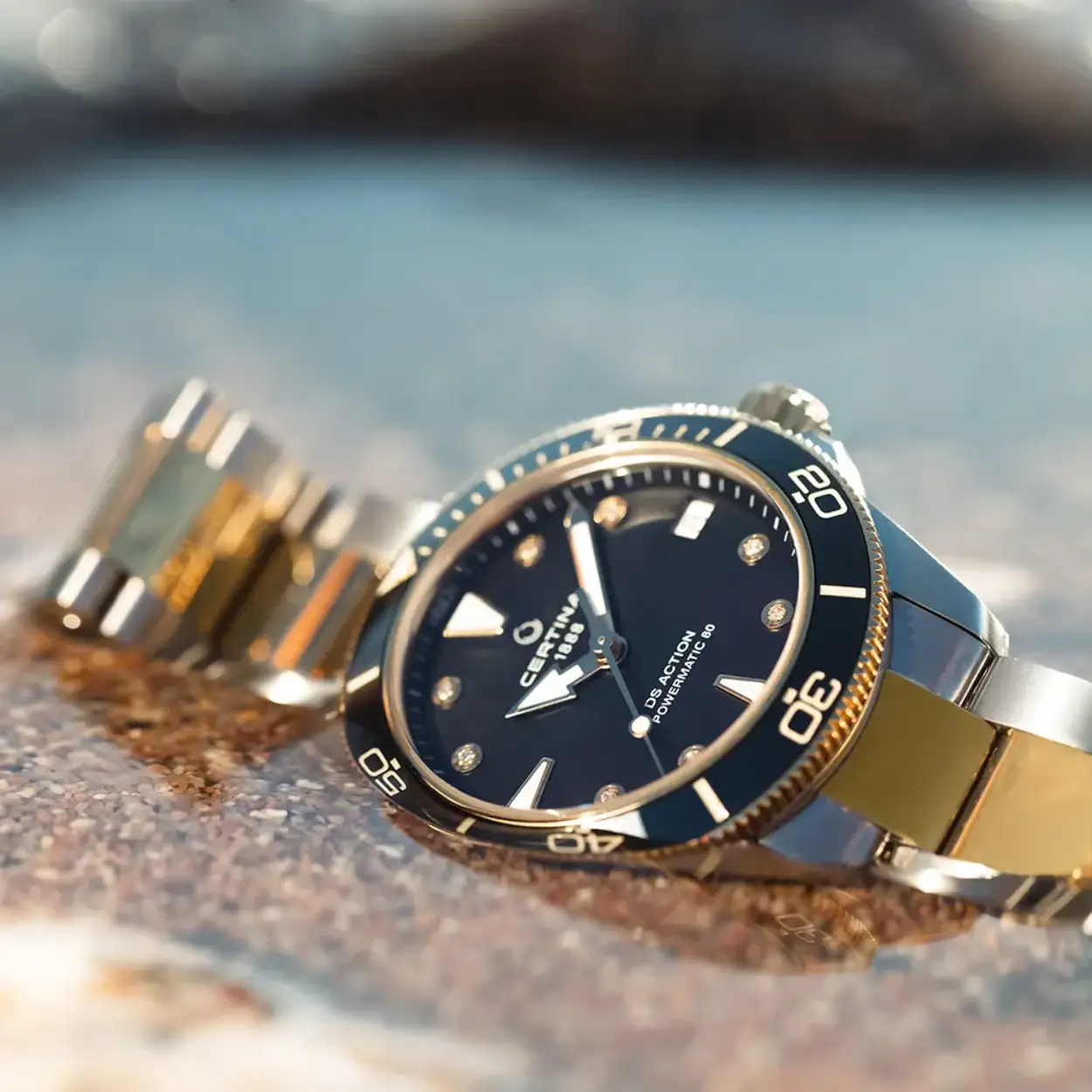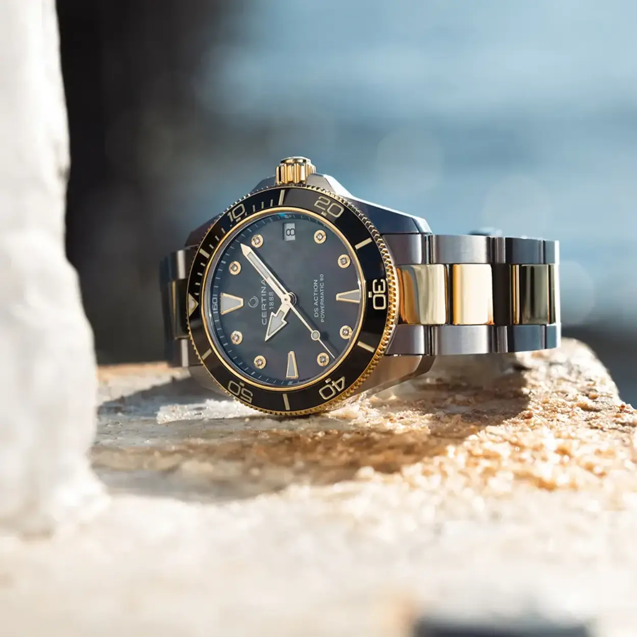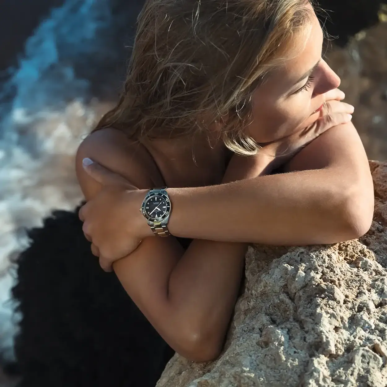 Deze nieuwste toevoeging aan de DS Action-lijn is de perfecte pasvorm voor dames met een slanke pols. Ondanks zijn bescheiden formaat biedt dit duikhorloge 30 ATM waterdichtheid, een betrouwbaar automatisch ETA 80.111 uurwerk, ontspiegeld saffierglas en enorm veel stijl! Echte diamanten indexen markeren de uren en voegen een extra vrouwelijke toets toe aan een toch al elegant horloge.