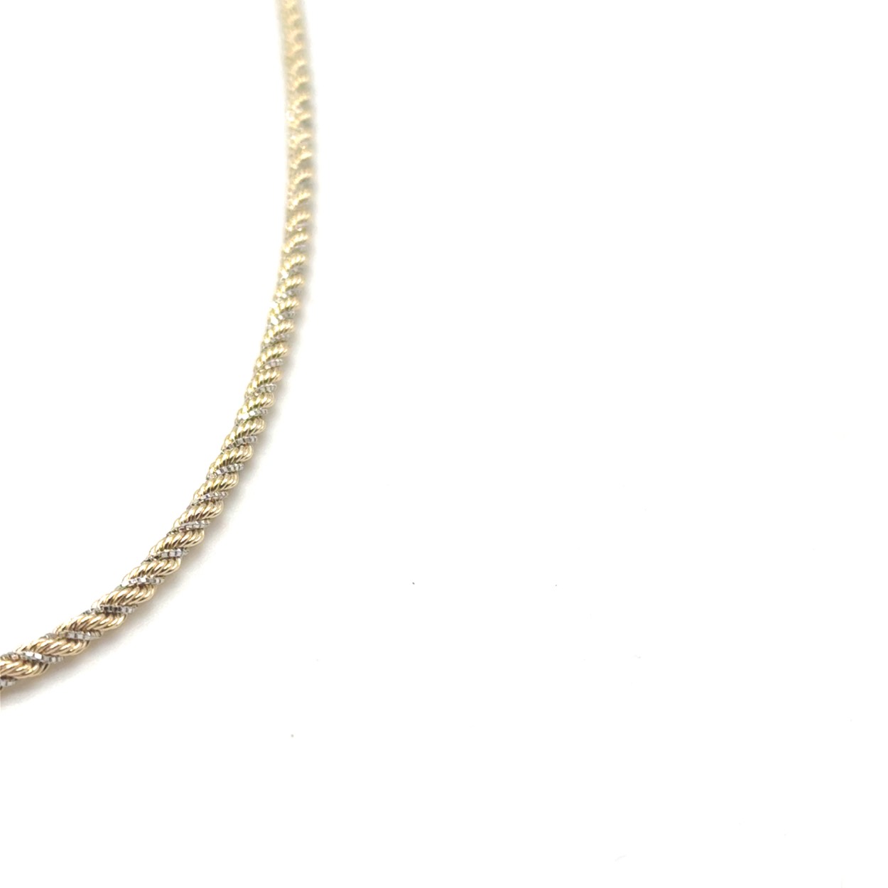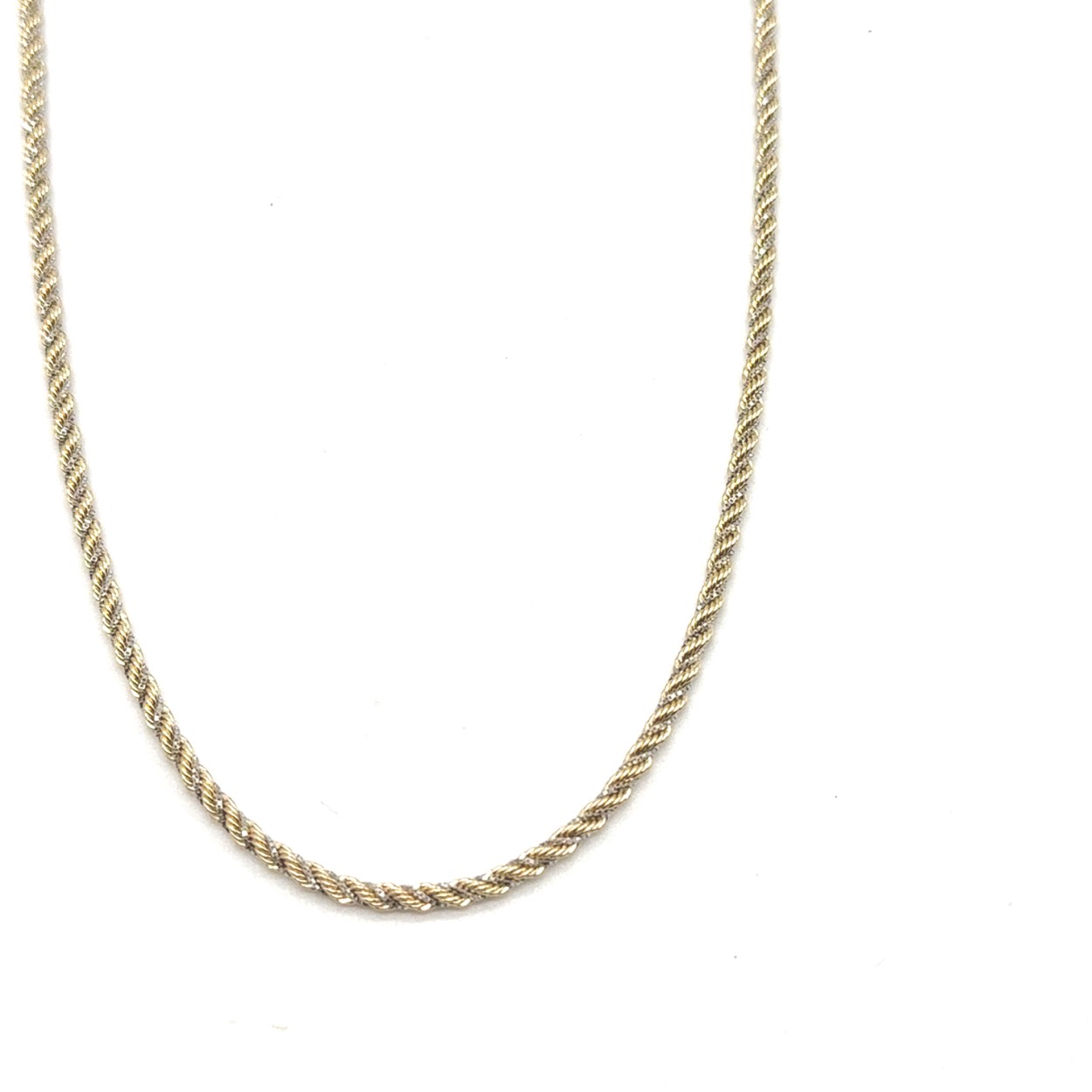 14k witgoud met geelgoud. ketting is ca 45cm en ca 6.2 gram.