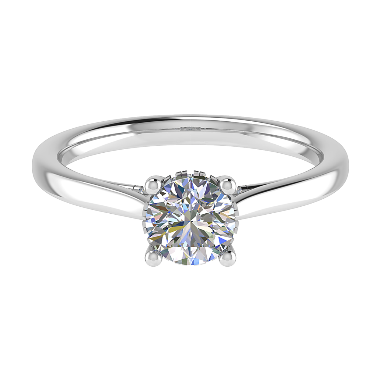 14k witgouden lab grown diamanten ring van 0.79 caraat. ring heeft een hidden halo zetting. Lab grown diamant is 0.79 caraat met een D kleur en VVS 2 helderheid